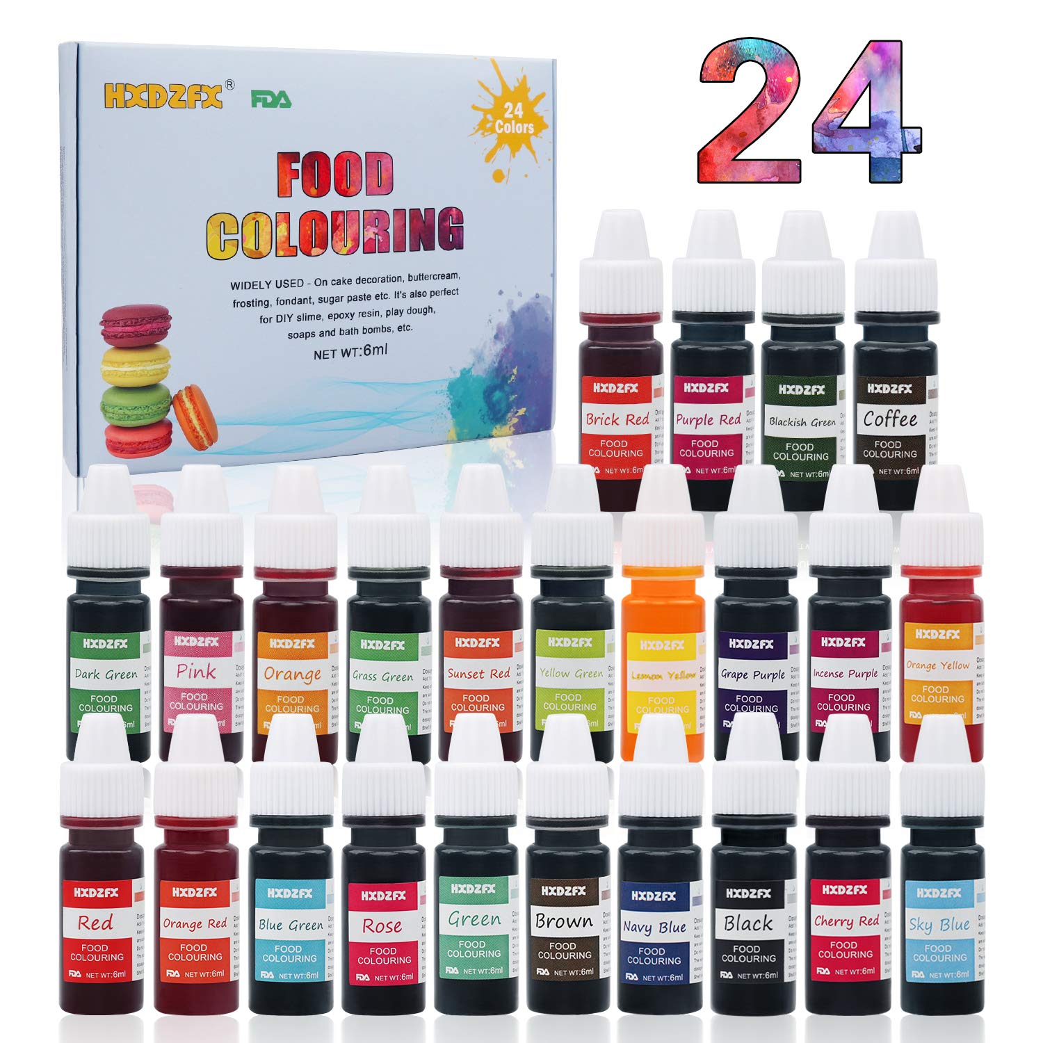 Amazon Com Food Coloring 24 Color Rainbow Fondant Cake Food Coloring Set For Baking Decorating Icing And Cooking Neon Liquid Food Color Dye For Slime Soap Making Kit And Diy